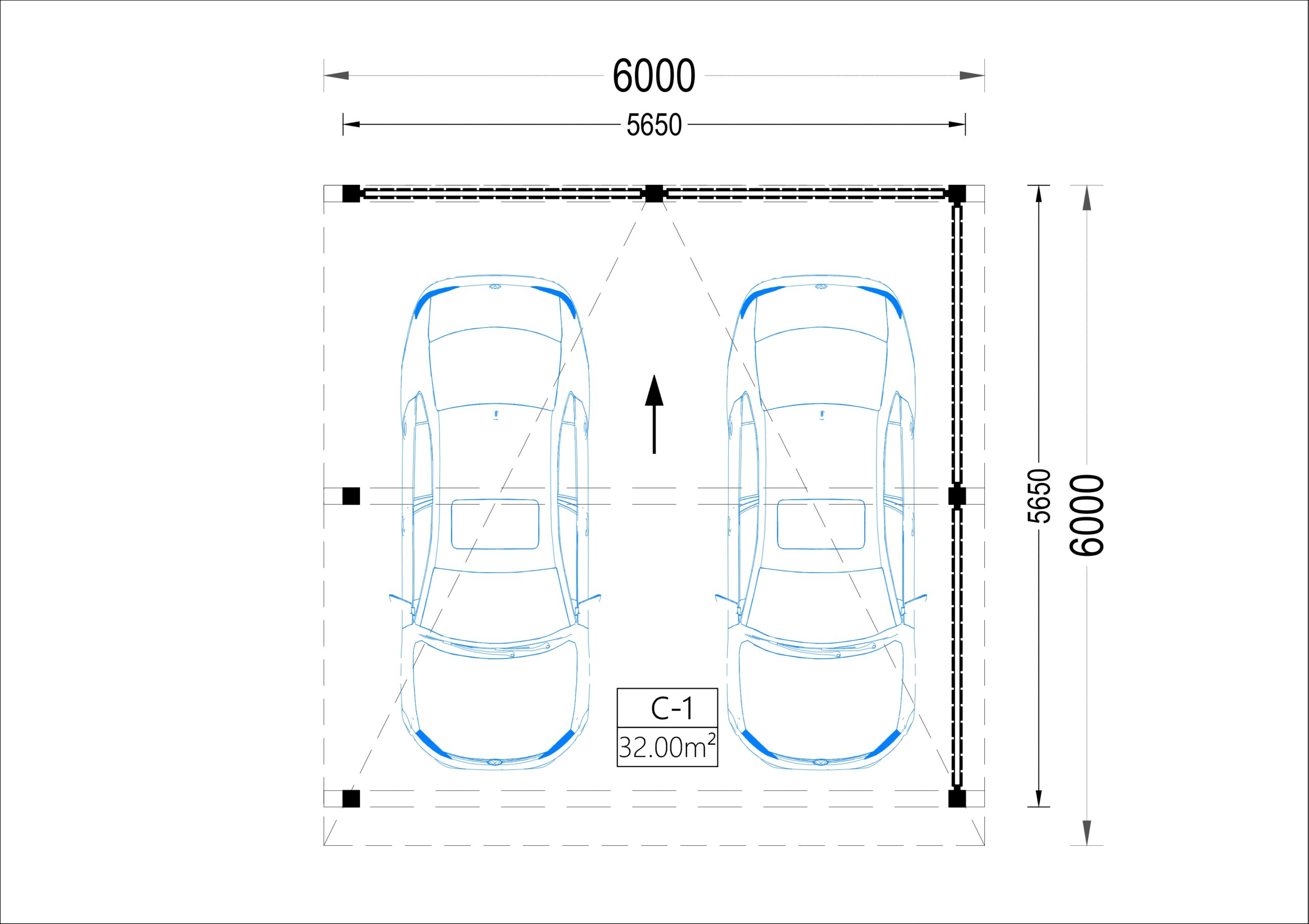 Doppelcarport mit L-förmiger Wand, 6x6m