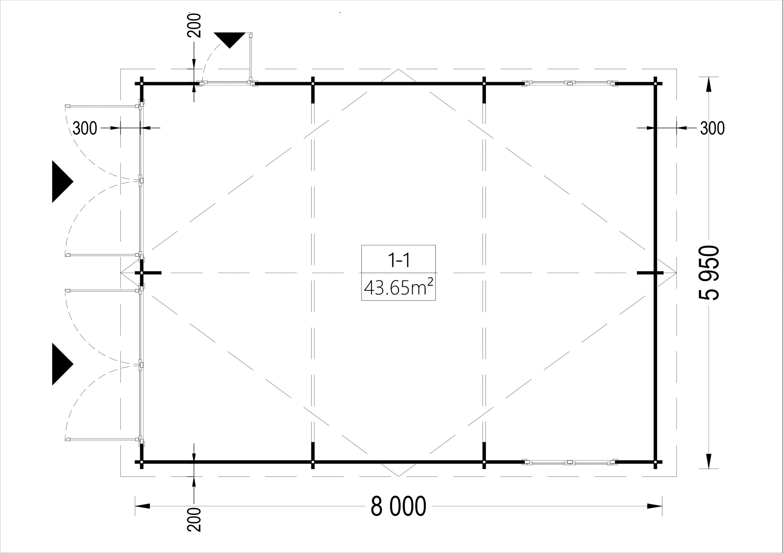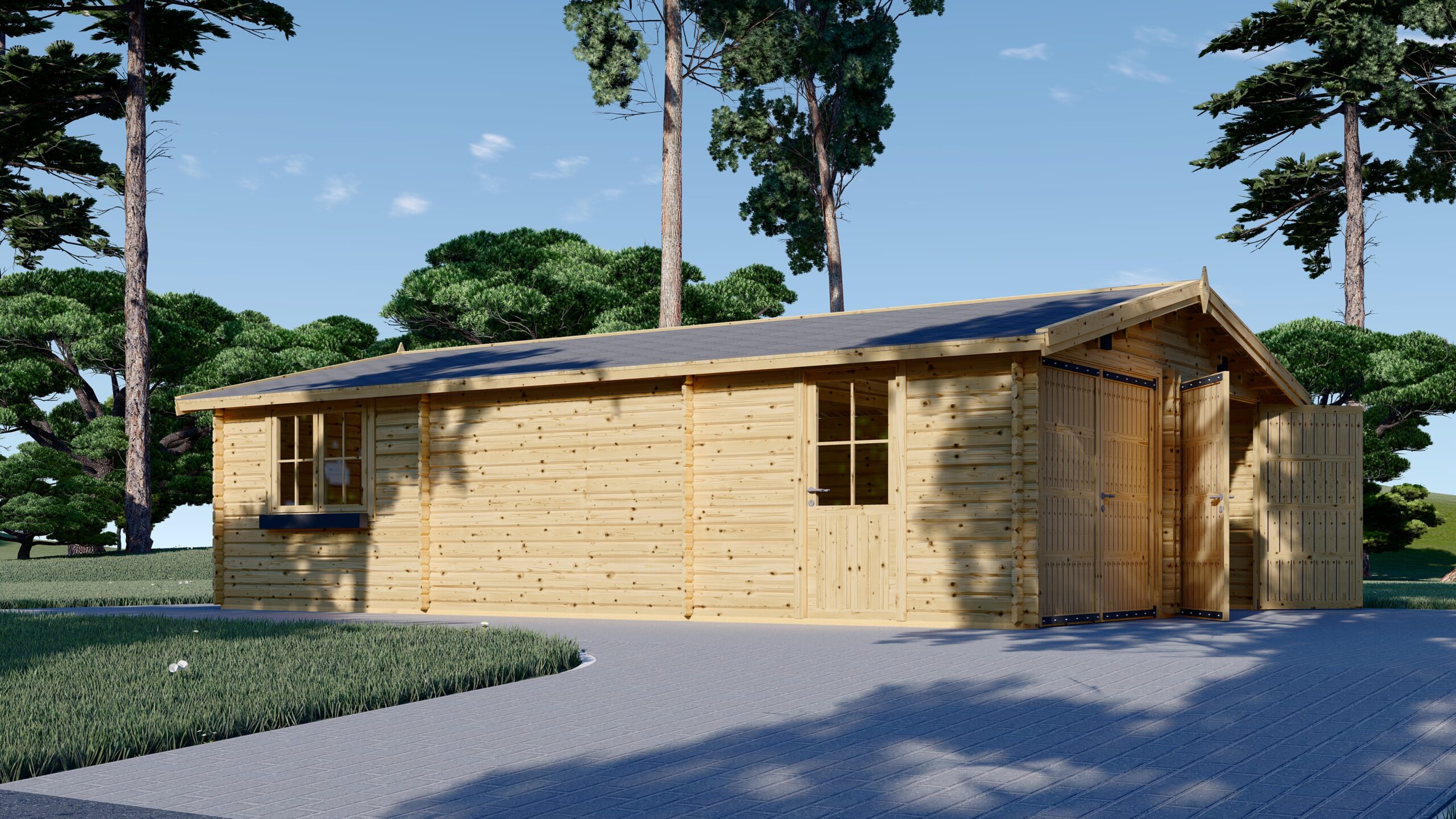 Doppelgarage aus Holz (44mm), 6×8 m, 48m²
