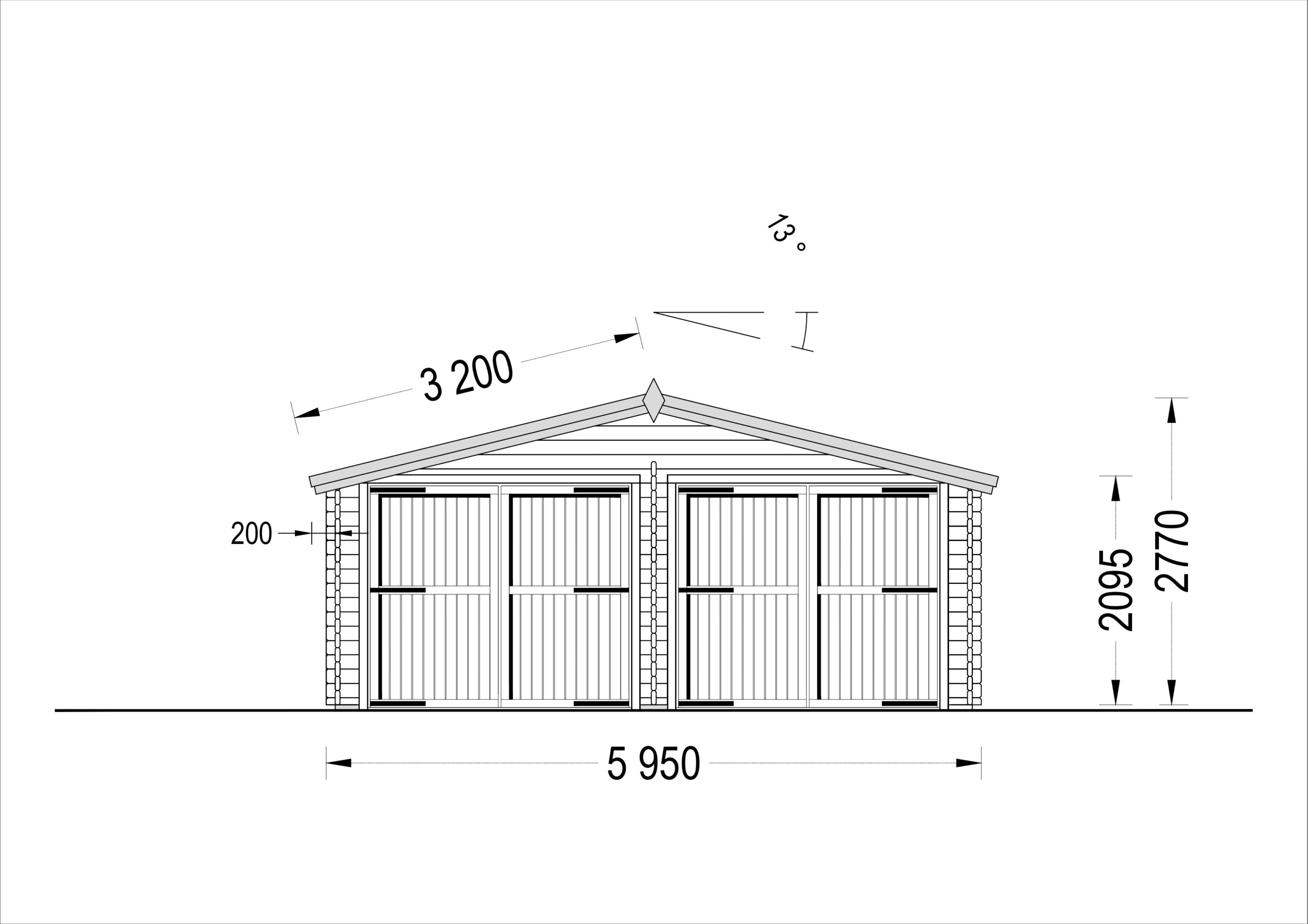 Doppelgarage aus Holz (44mm), 6×9 m, 48m²