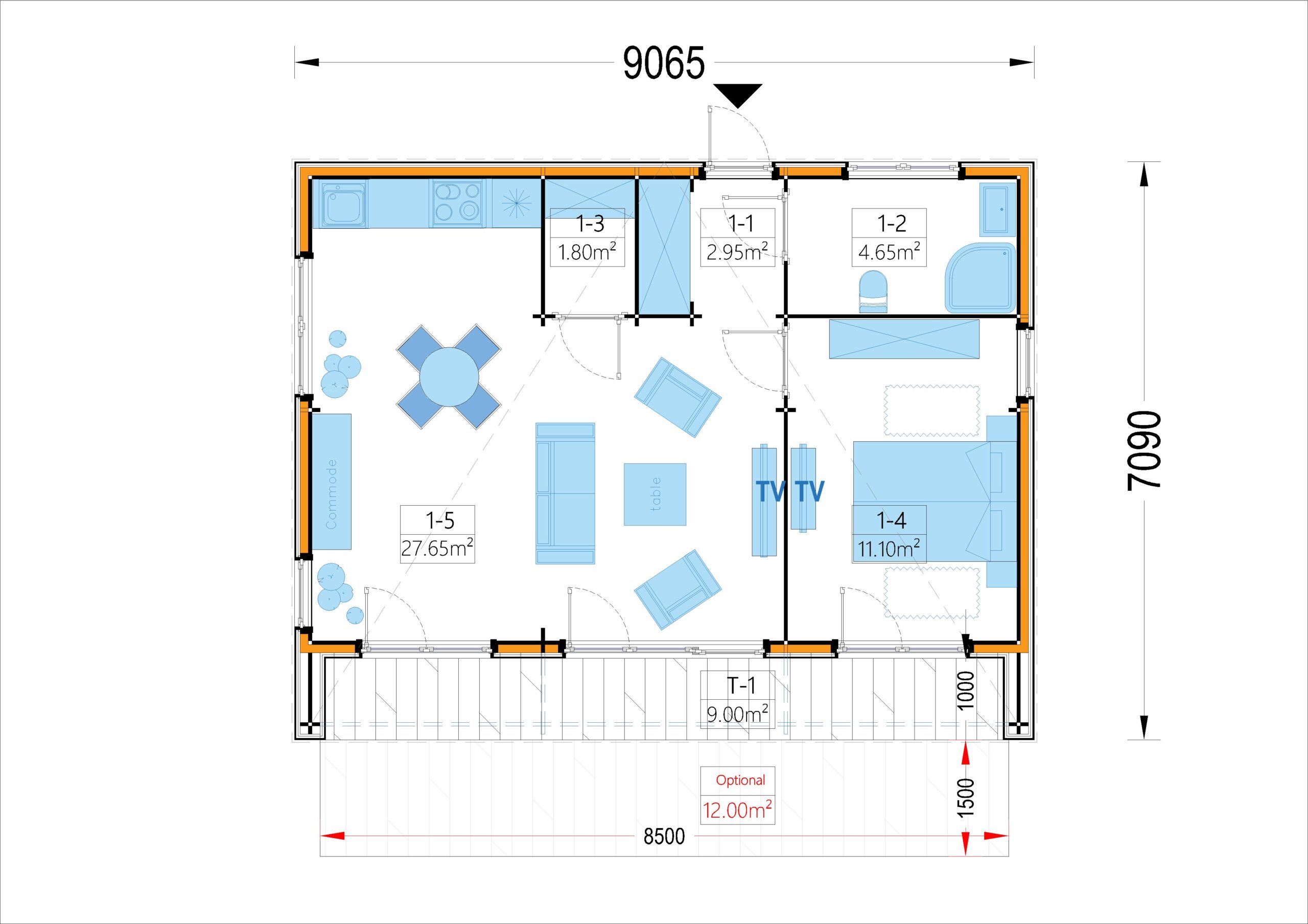 Und für diejenigen, die das Leben im Freien lieben, steht eine optionale Terrasse zur Verfügung, perfekt für gesellige Grillabende oder entspannte Stunden im Sonnenschein, ohne das Haus verlassen zu müssen.