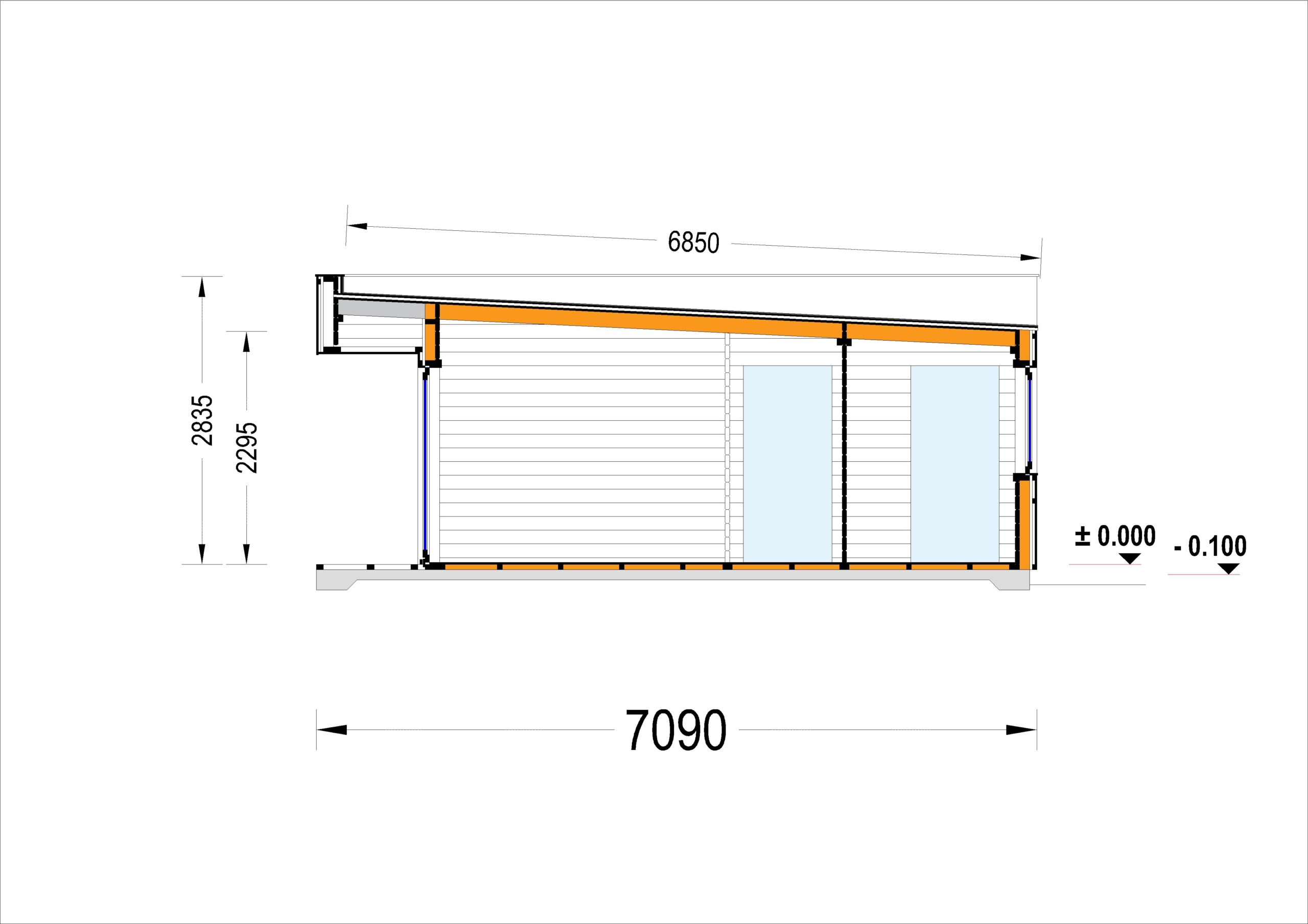 Holzhaus KULM 1 (66 mm + Holzverschalung) 48 m² Isoliert