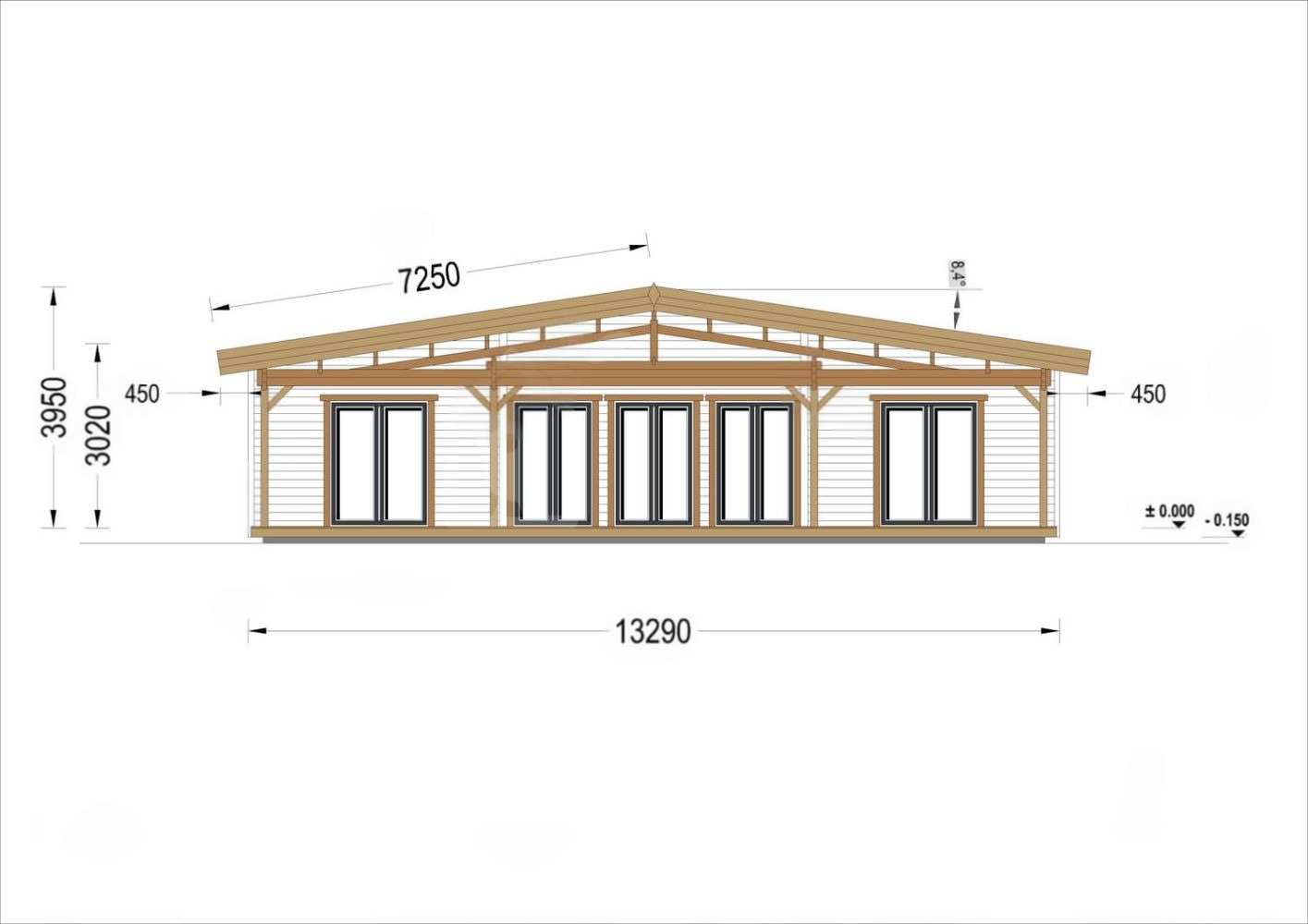 Holzwohnhaus Florenz Isoliert, 66 mm + Holzverschalung, 84 m²