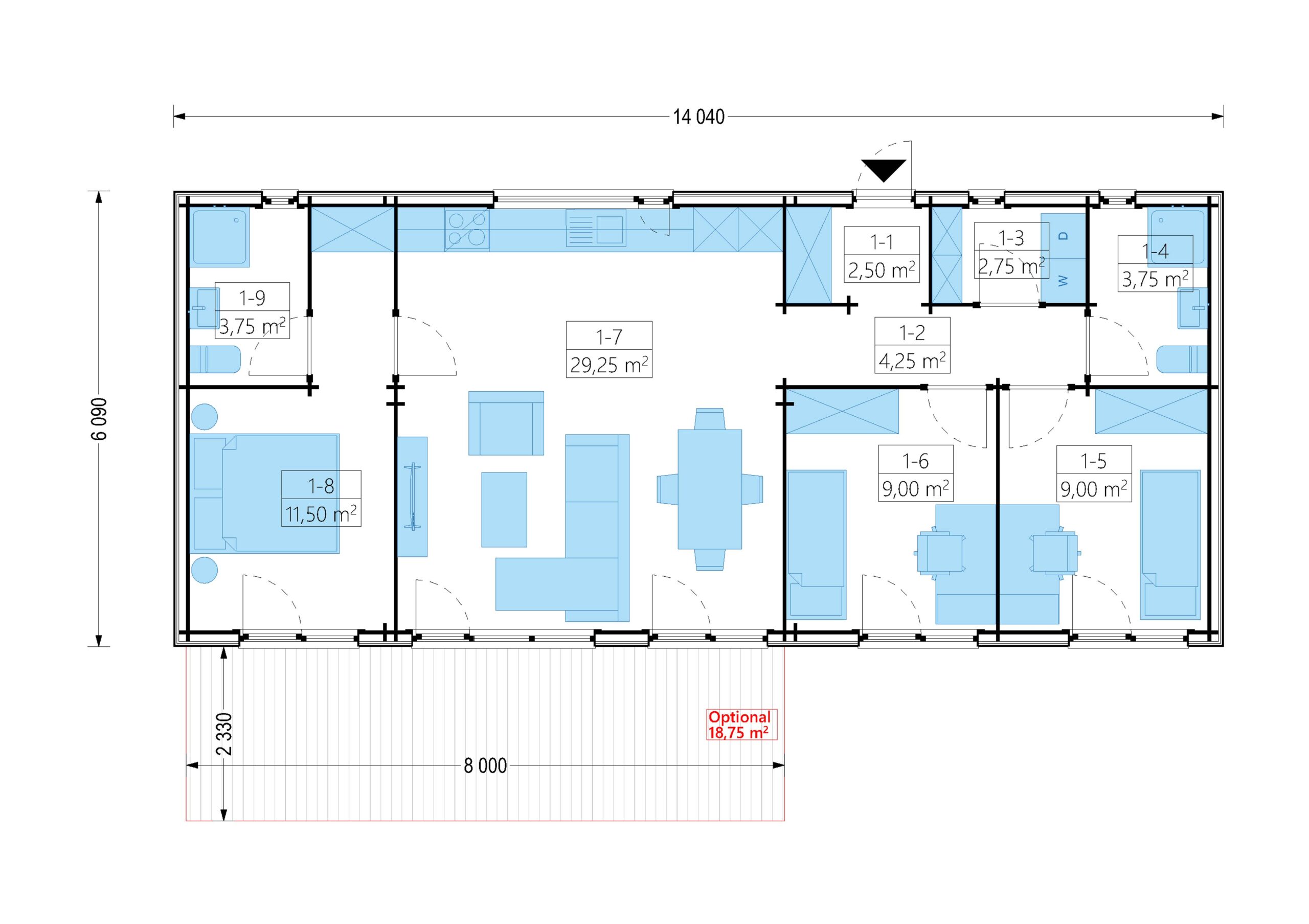 Wohnhaus BERTA 3 (66 mm + Holzverschalung Isoliert), 75 m²