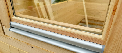 Unsere Gartenhäuser werden standardmäßig mit vormontierten Gummidichtungen für Fenster und Türen geliefert. Dies gewährleistet nicht nur eine effektive Abdichtung gegen Wasser, sondern sorgt auch für eine luftdichte und zugfreie Umgebung im Inneren Ihres Gartenhauses.